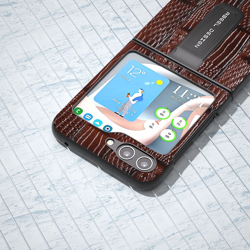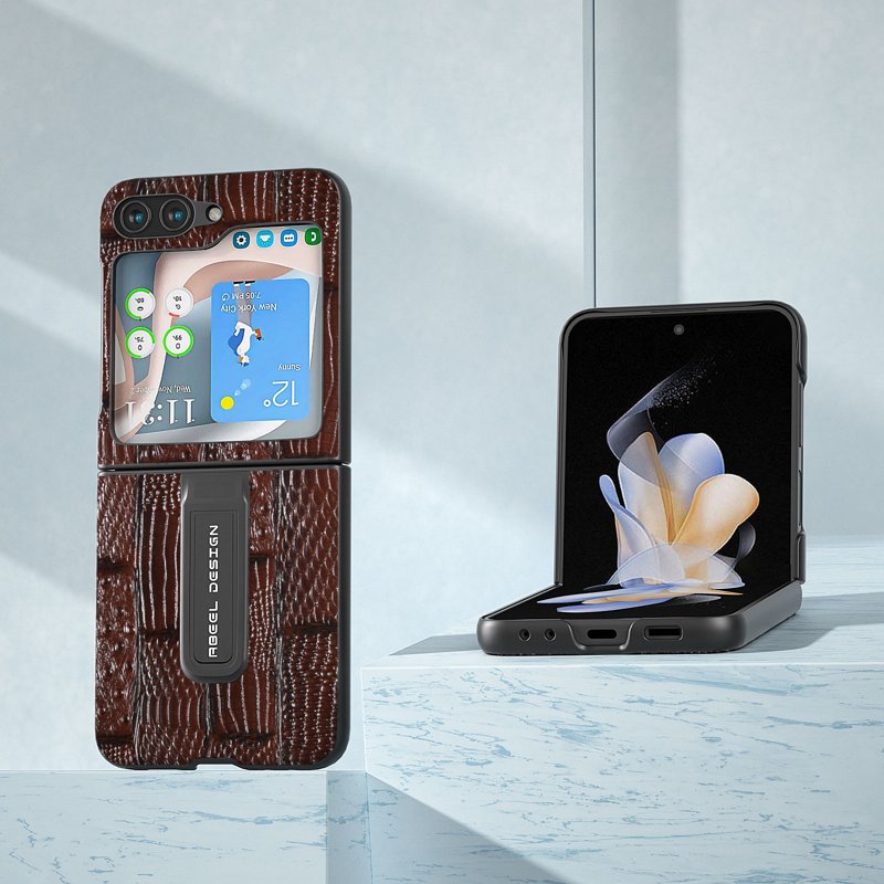 ABEEL Samsung Galaxy Z Flip5 Fodral Mahjong Textur Brun