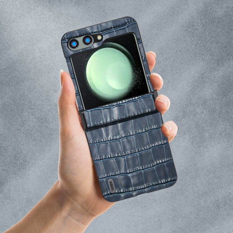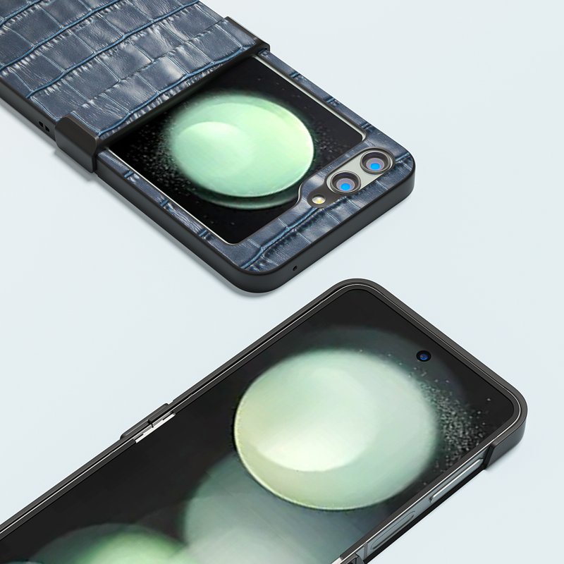 Denna fodral är tillverkat av äkta nötköttsläder och PC-material. Det erbjuder hållbart skydd för din enhet. Med en klassisk krokodilstruktur ger det en elegant och sofistikerad look. Den flexibla gångjärnsdesignen gör det enkelt att öppna och stänga utan att kompromissa med hållbarheten.