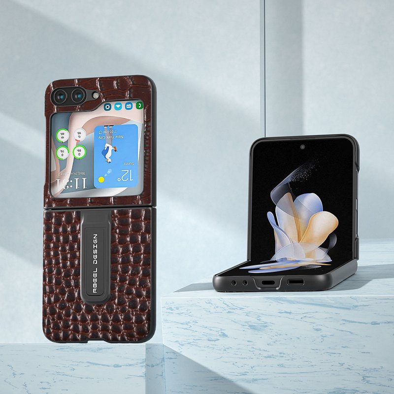 Detta fodral är tillverkat av texturerat äkta nötköttsläder och PC-material. Det är både stiligt och hållbart. Med sin unika krokodiltextur ger det en modern look. Fodralet är designat för att skydda din telefon utan att påverka dess funktionalitet.