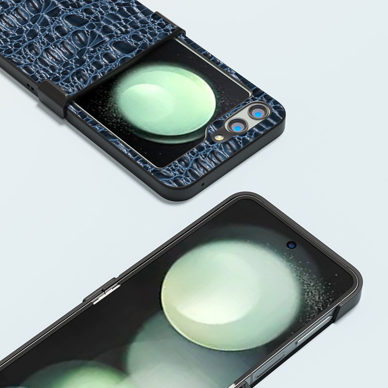 Denna telefonfodral är tillverkat av äkta nötköttsläder och PC-material. Det erbjuder både hållbarhet och en unik design. Med sin texturerade yta ser det inte bara bra ut, utan skyddar också din telefon mot repor och slitage. Perfekt för den stilmedvetna användaren.