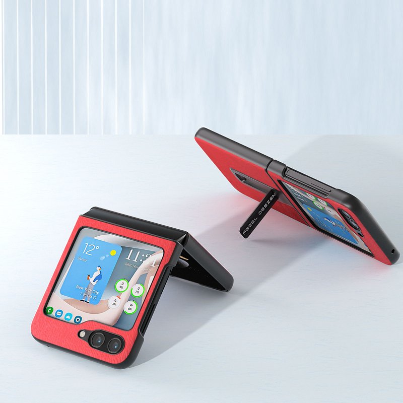 ABEEL Samsung Galaxy Z Flip5 Skal PU Läder Kickstand Röd