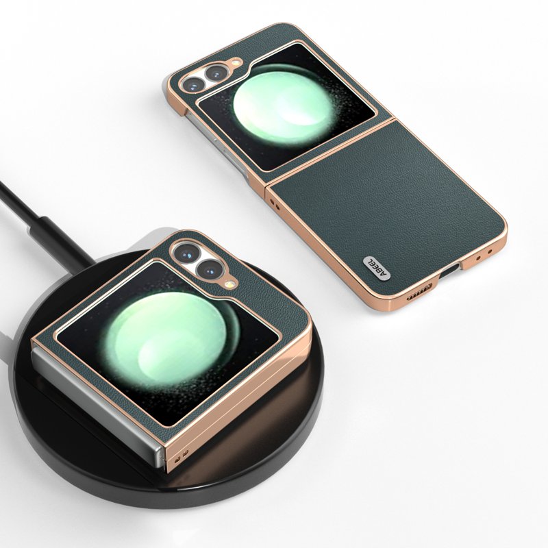 ABEEL Samsung Galaxy Z Flip7 FE 5G Mobilskal Äkta Läder Grön
