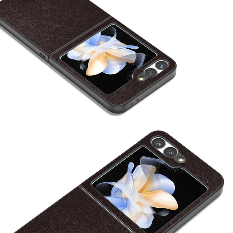 Denna mobilskal är tillverkat av äkta nötköttsläder och ett slitstarkt PC-material. Det erbjuder både stil och hållbarhet. Med sin slimmade design skyddar det din telefon mot repor och skador. En perfekt kombination av funktion och estetik för den moderna användaren.
