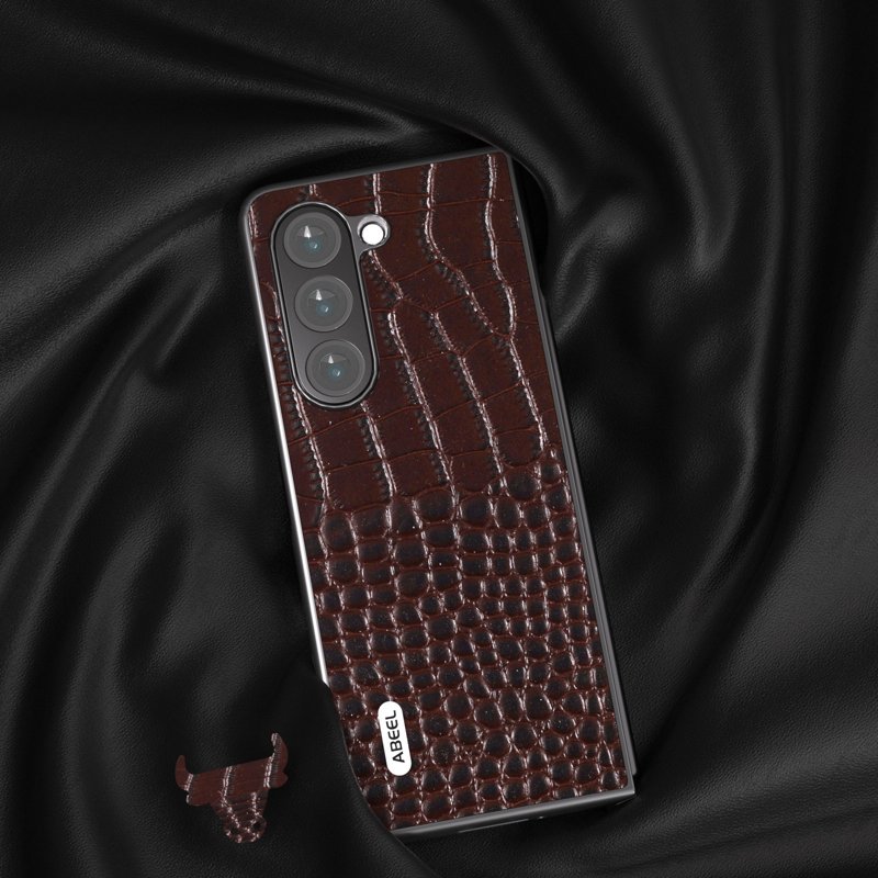 ABEEL Samsung Galaxy Z Fold5 5G Skal i Läder Krokodil - Kaffe