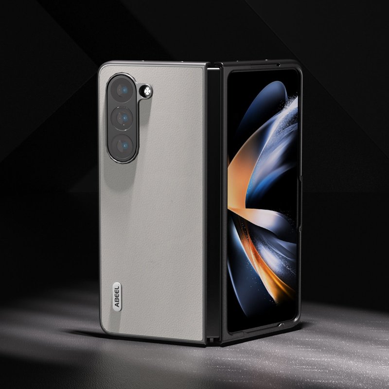 ABEEL Samsung Galaxy Z Fold5 Fodral i äkta läder Grå