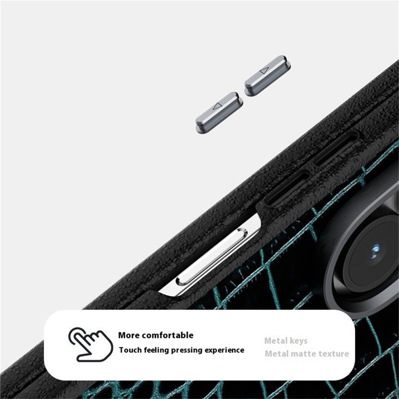 • Premium materialkombination: Tillverkad av PC-skal, TPU-kant, aluminiumlegering och äkta nötköttsläder. Lyxig look och känsla.