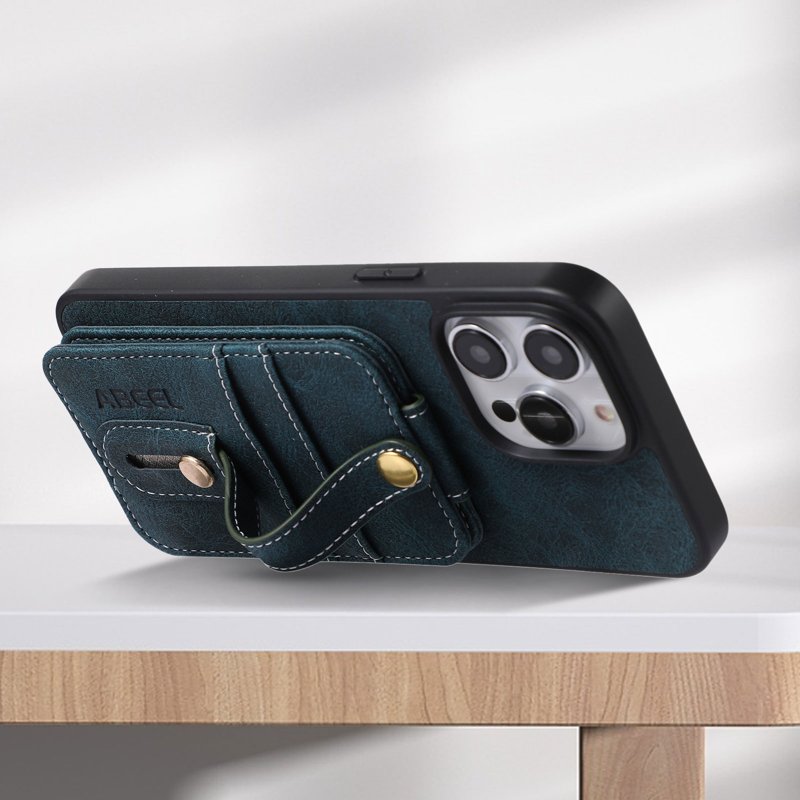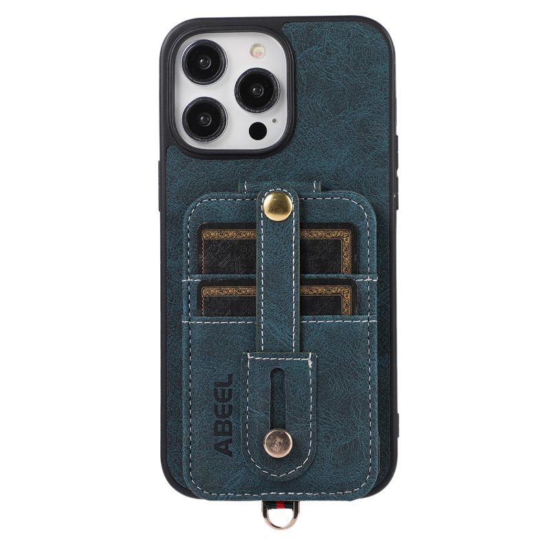 ABEEL Style 02 iPhone 15 Pro Skal Läder TPU Kickstand Blå