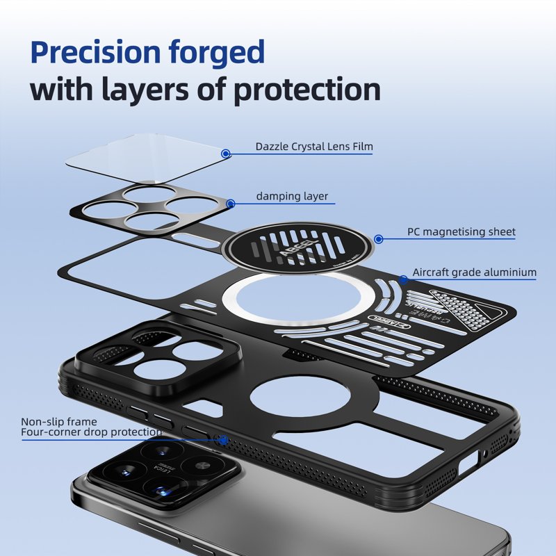 - Premium Material: Tillverkat av flygplansklassad frostad aluminiumlegering, PC och TPU. Ger utmärkt värmeledningsförmåga och en modern look.