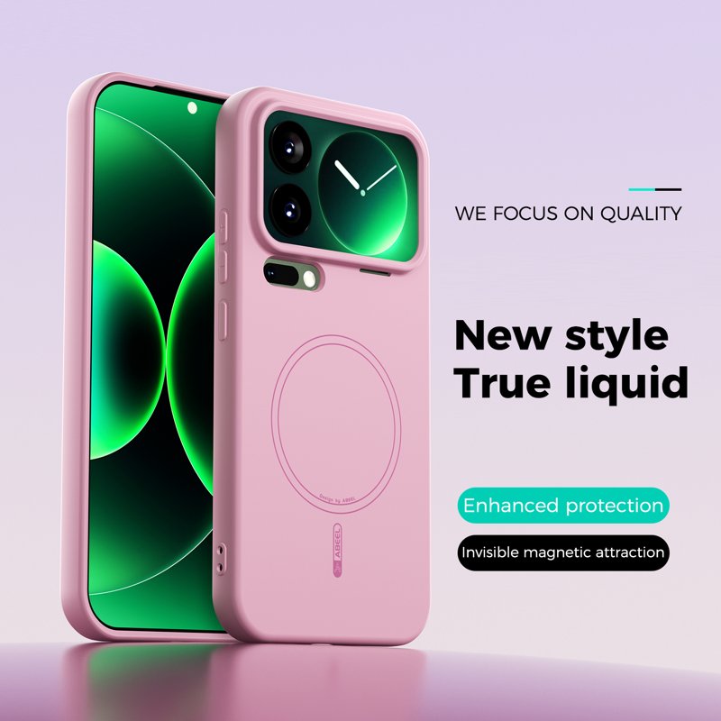 Skydda din telefon med detta premium skal. Tillverkat av högkvalitativt flytande silikon, erbjuder det både komfort och hållbarhet. Med en mjuk fiberfoder och magnetisk kompatibilitet är detta skal perfekt för daglig användning och säker laddning.