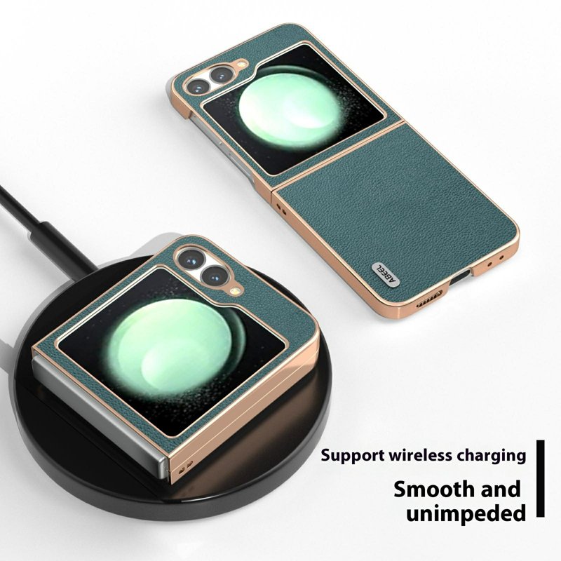 Detta fodral är tillverkat av äkta nötköttsläder och PC-material. Det ger en lyxig känsla och ett stilrent utseende. Med 360 graders skydd skyddar det din telefon mot repor och stötar. Fodralet är designat för att passa perfekt och möjliggör trådlös laddning.