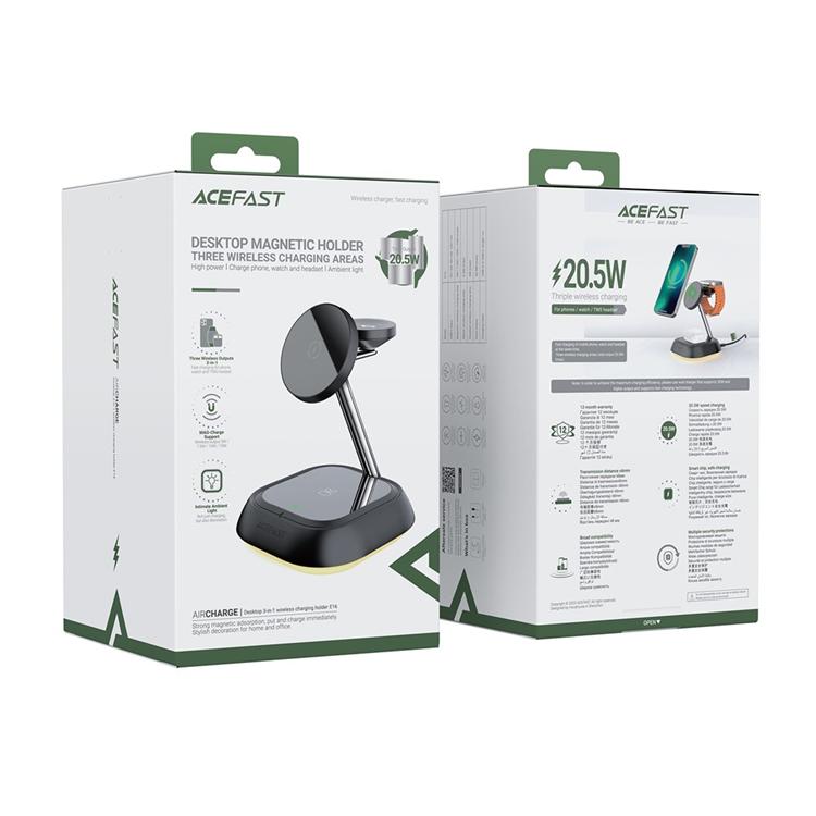 ACEFAST 3in1 Trådlös Laddare iPhone, Apple Watch, Airpods med Atmosfärsljus E16 - Svart