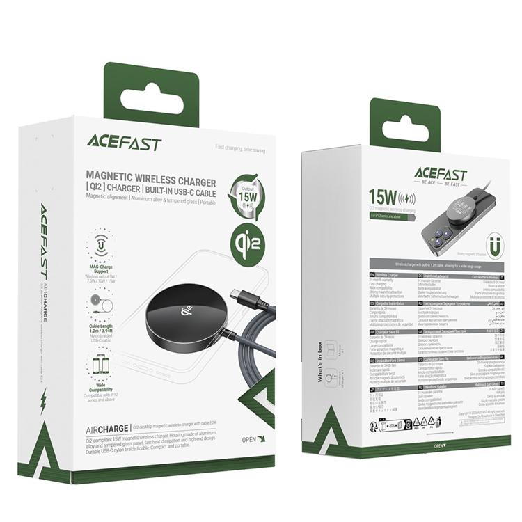 Acefast Qi2 Skrivbord MagSafe Trådlös Laddare iPhone med Typ-C-kabel E24 - Svart