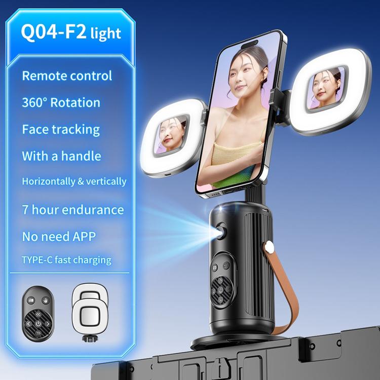 Ta ditt innehåll till nästa nivå med Q04 F2 AI Smart Gimbal Stabilisator – en intelligent, portabel och mångsidig telefonhållare som kombinerar AI-ansiktsigenkänning, fjärrstyrning via Bluetooth 5.2 och två kraftfulla fyllnadsljus för professionell belysning vid varje inspelning.