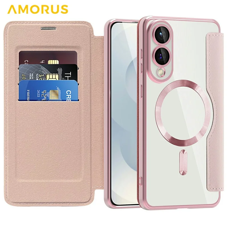 Amorus Galaxy S25 Edge Plånboksfodral Magsafe RFID Blocking - Rosa