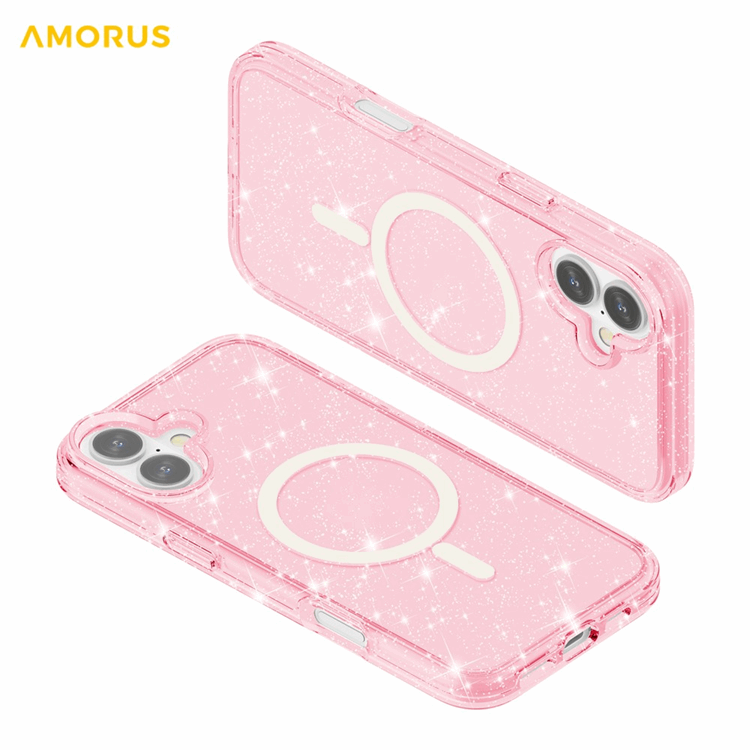 AMORUS iPhone 17 Mobilskal Magsafe Glitter Powder TPU + PC - Rosa