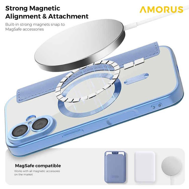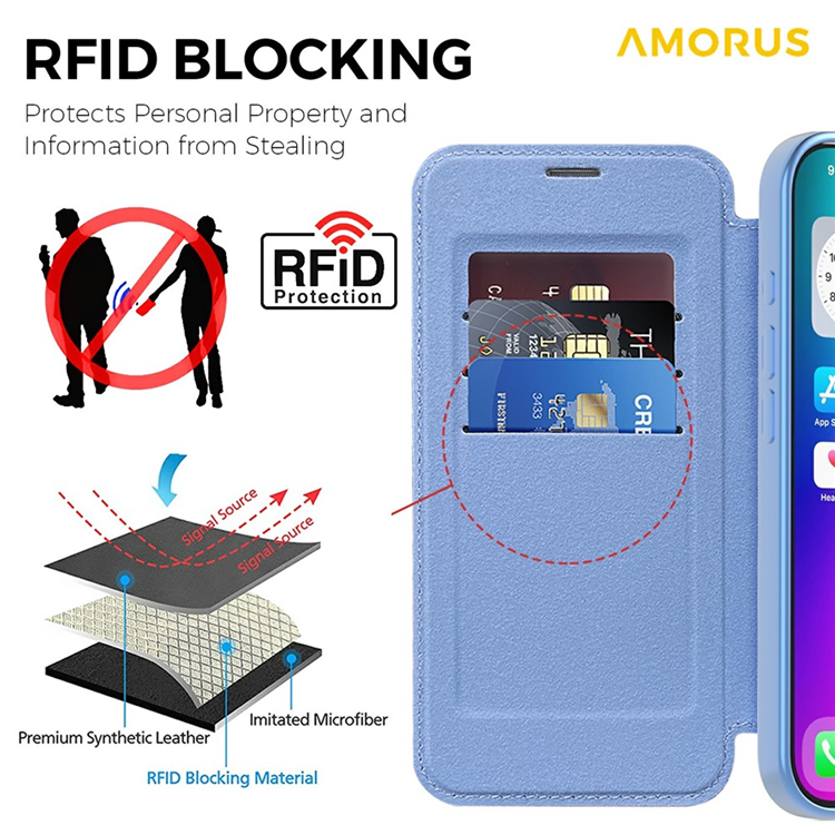 AMORUS iPhone 17 Plånboksfodral MagSafe RFID Blocking - Blå