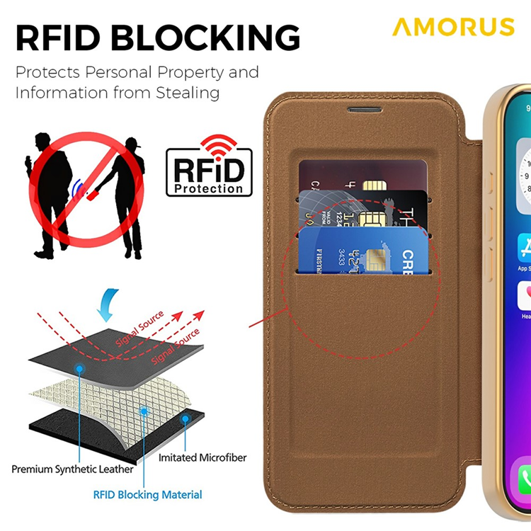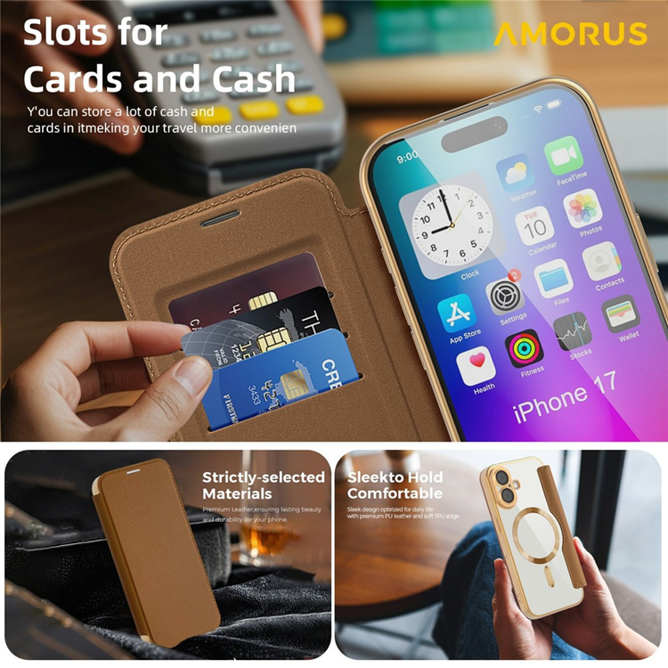 AMORUS iPhone 17 Plånboksfodral MagSafe RFID Blocking - Brun
