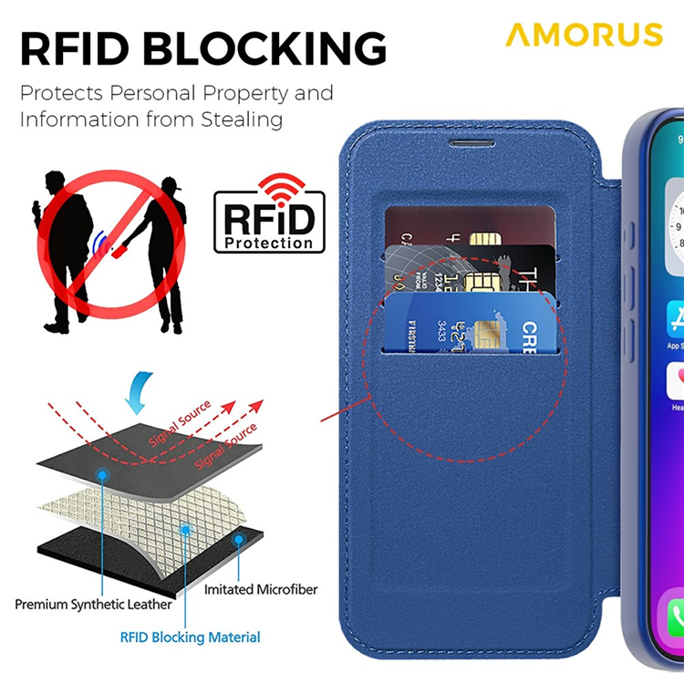 AMORUS iPhone 17 Plånboksfodral MagSafe RFID Blocking - Sapphire