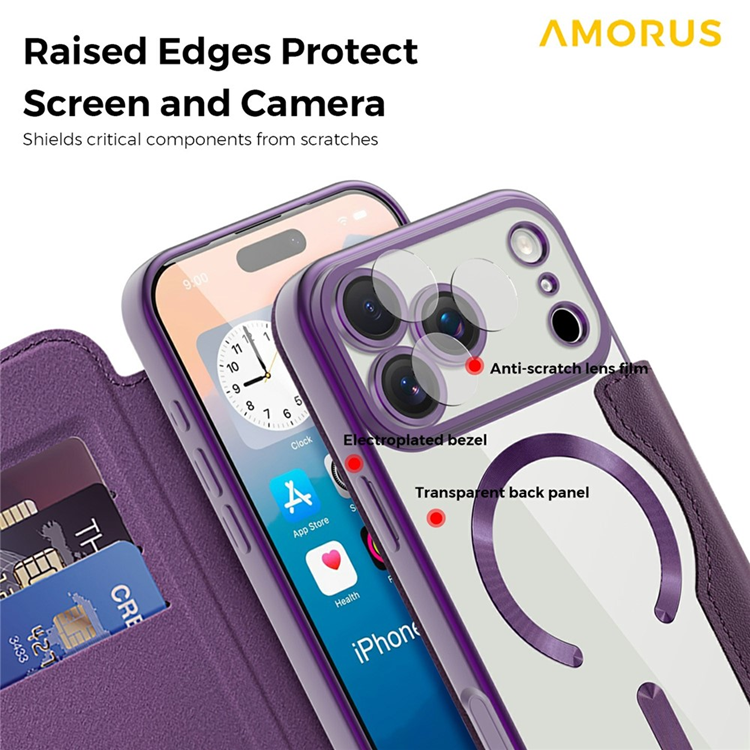 AMORUS iPhone 17 Pro Max Plånboksfodral MagSafe RFID Blocking - Mörklila