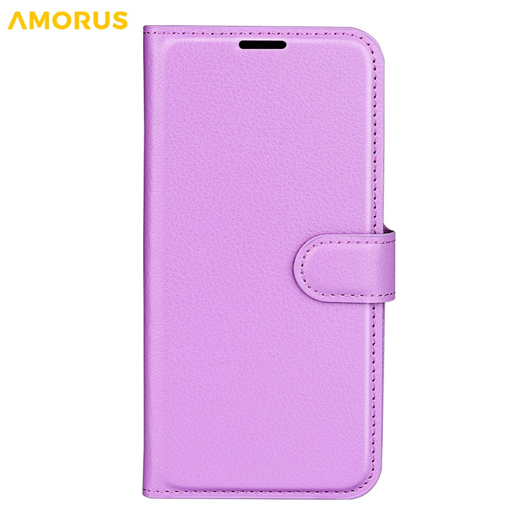 AMORUS iPhone 17 Pro Max Plånboksfodral Flipstativ Litchi Texture Shockproof Läder - Lila