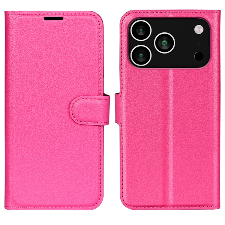AMORUS iPhone 17 Pro Plånboksfodral Flipstativ Litchi Texture Shockproof Läder - Rose