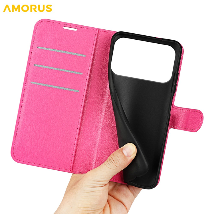 Ge din iPhone 17 Pro ett elegant och praktiskt skydd med detta Amorus plånboksfodral, tillverkat i PU-läder med lyxig litchi-textur och ett flexibelt TPU-innerfodral som absorberar stötar. Kombinationen ger både stil och pålitligt skydd mot repor, fall och dagligt slitage.