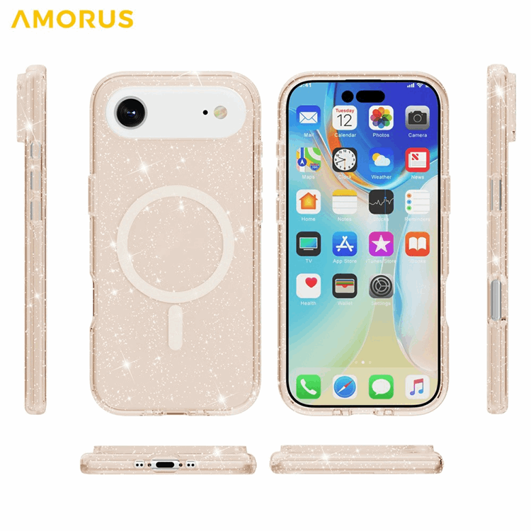 AMORUS iPhone Air Mobilskal Magsafe Glitter Powder TPU + PC - Guld