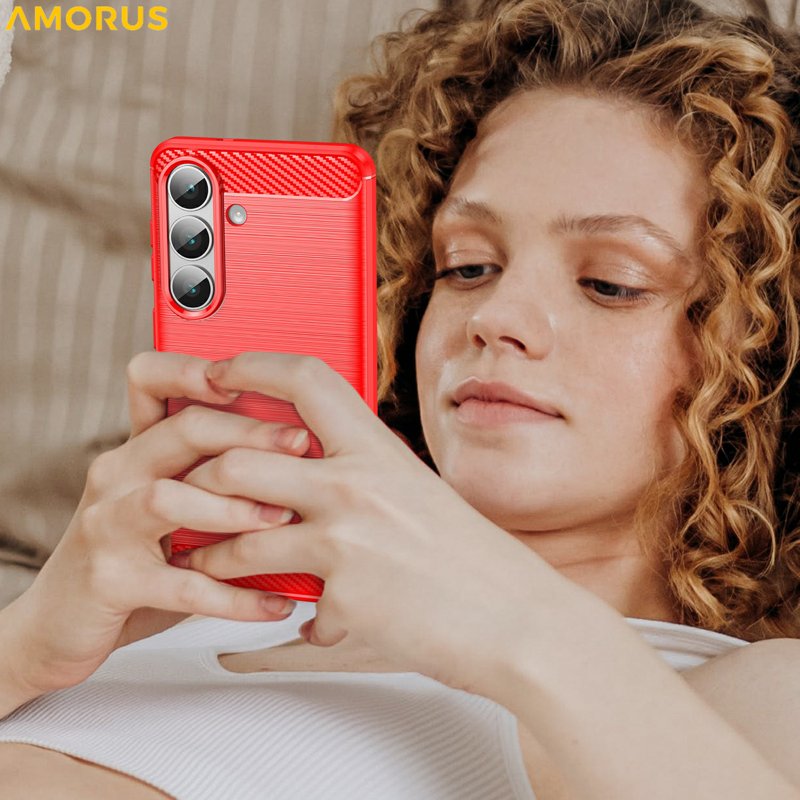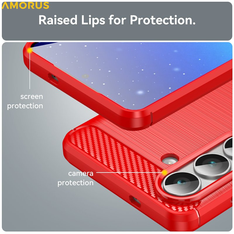 Handla denna produkt Amorus Mobilskal för Samsung Galaxy S26 Kolfibertextur Skydd - Röd