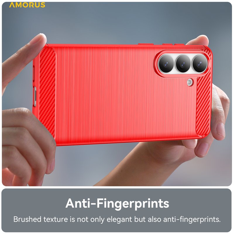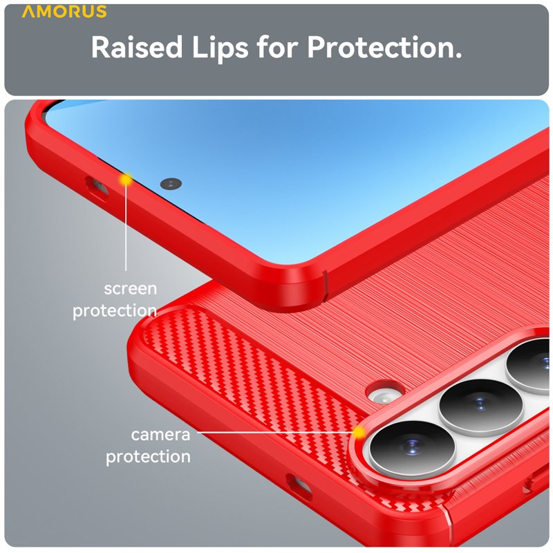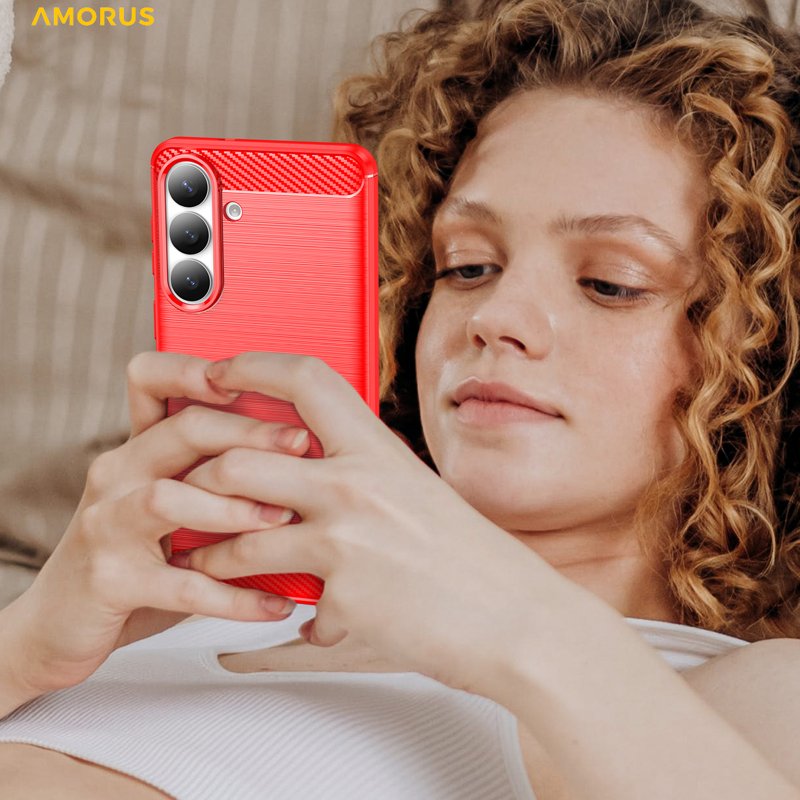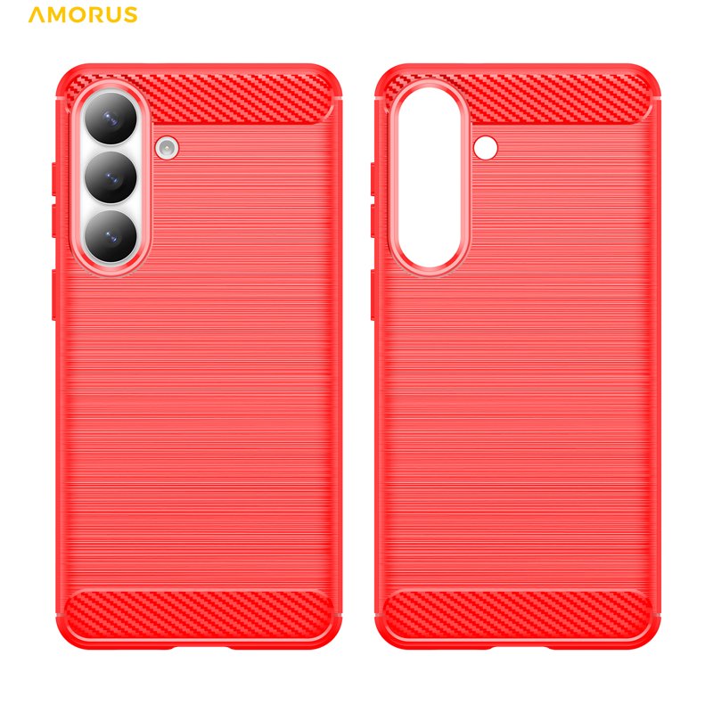 AMORUS Samsung Galaxy S26 Plus Mobilskal Kolfiber Textur Skydd - Röd