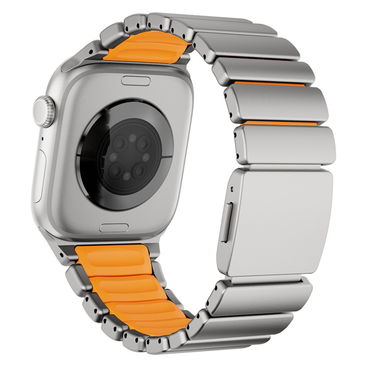 Apple Watch (42/44/45/46/49mm) Armband Stainless Steel - Titanium/Orange