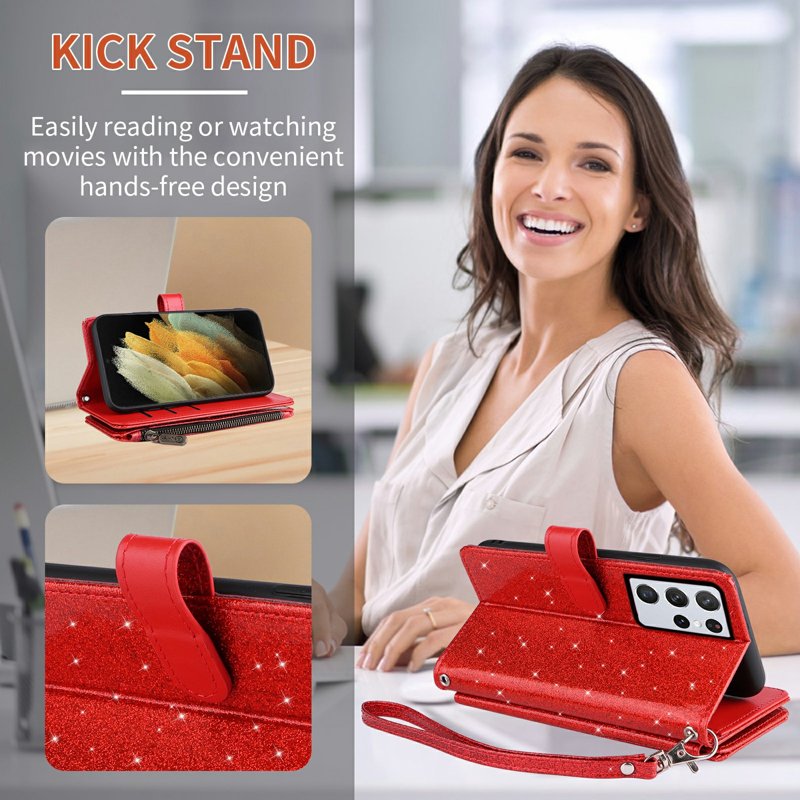 • Elegant glittrig finish: Den glittrande läderytan ger en lyxig känsla och ett bra grepp.