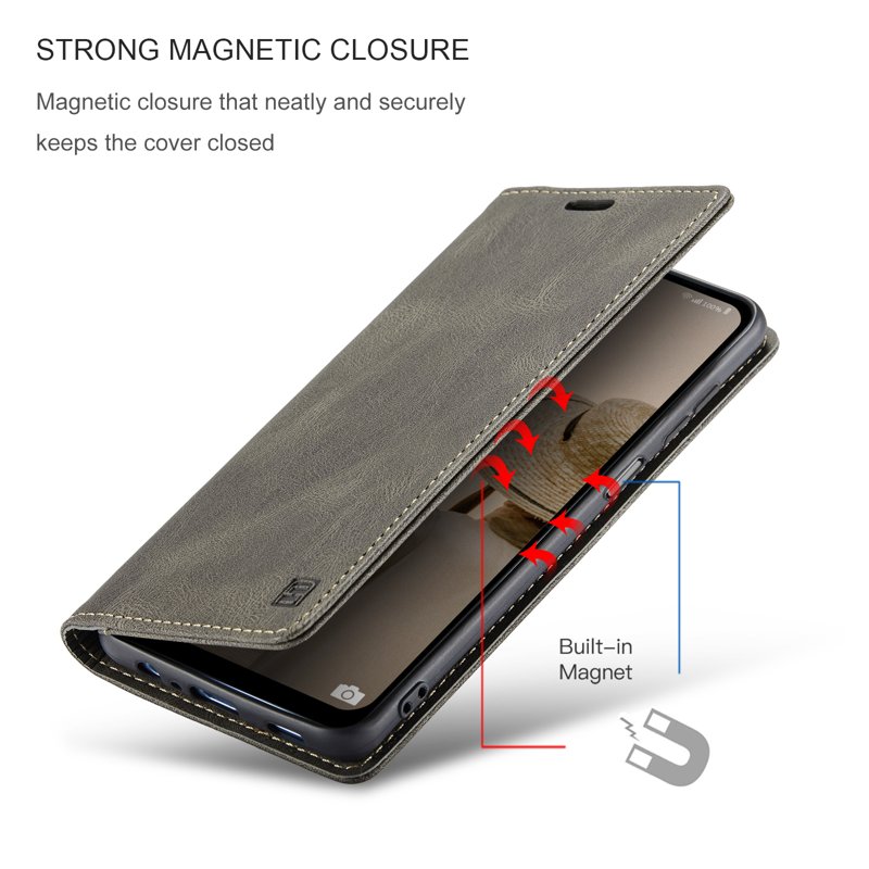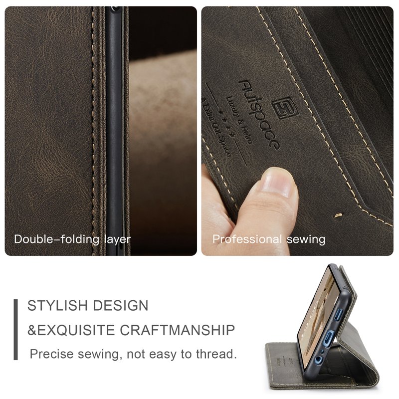 AUTSPACE A01 Flip Leather Fodral för Samsung Galaxy A14 - Kaffe