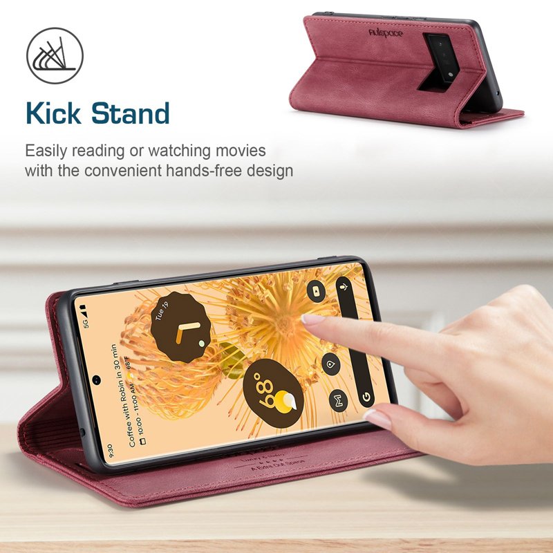 Upptäck AUTSPACE A01 fodralet för Google Pixel 6 Pro. Detta eleganta fodral i röd PU-läder kombinerar stil och funktionalitet. Med smarta funktioner skyddar det din telefon samtidigt som det erbjuder praktiska lösningar för din vardag.