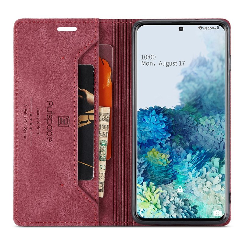 Upptäck AUTSPACE A01 fodralet för Samsung Galaxy S20 Plus. Detta eleganta fodral i röd PU-läder kombinerar stil och funktionalitet. Med sin mjuka TPU-inre ger det ett behagligt grepp och skyddar din telefon på bästa sätt. Fodralet är designat för att skydda din personliga information och erbjuder praktiska lösningar för din vardag.