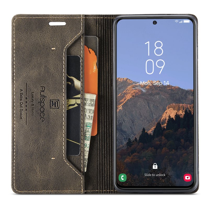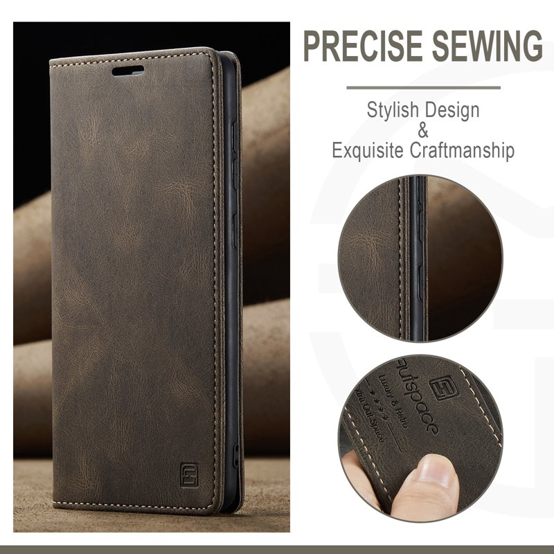 Upptäck AUTSPACE A01 Fodral för Samsung Galaxy S23+. Detta eleganta fodral är tillverkat av äkta läder och erbjuder både stil och funktionalitet. Med sin RFID-blockeringsteknik skyddar det dina personliga uppgifter. Fodralet har även en praktisk kortficka och en inbyggd ställning för handsfree-användning. Perfekt för den moderna användaren.