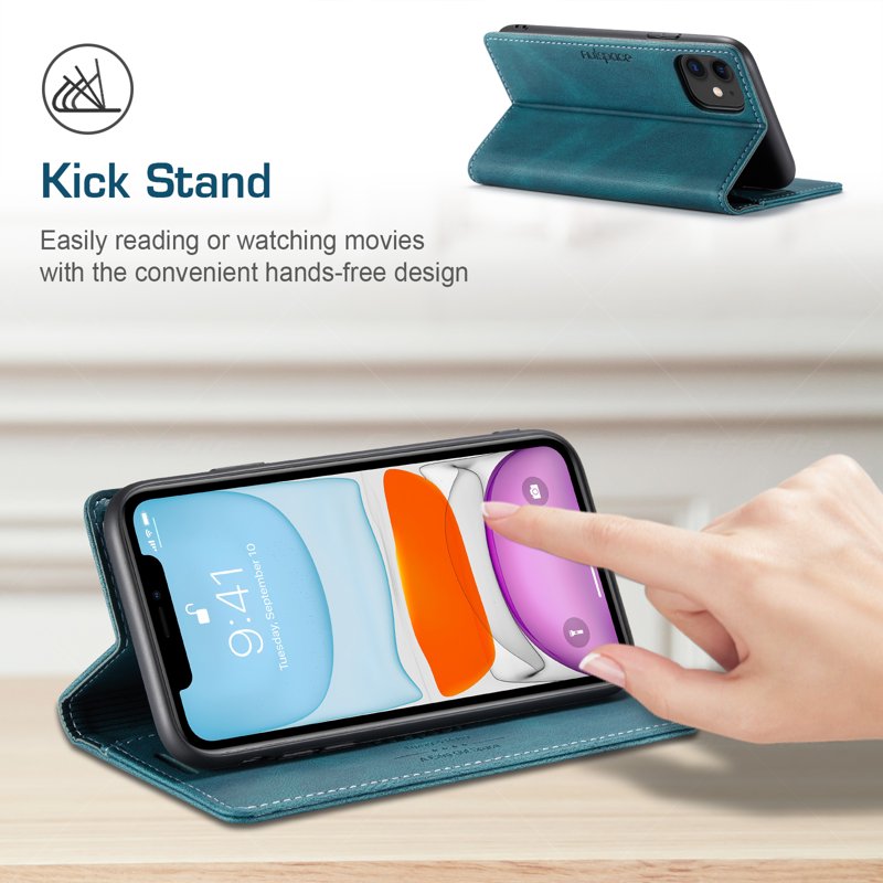 AUTSPACE A01 Fodral i Äkta läder för iPhone 11 - Blå
