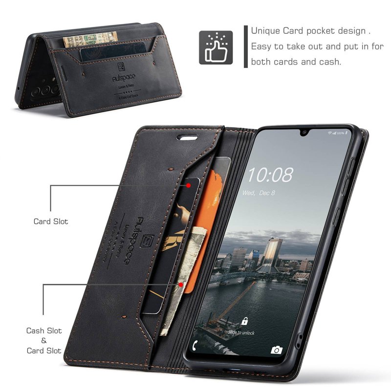 Upptäck AUTSPACE A01 fodralet för Samsung Galaxy A33 5G. Detta eleganta fodral i premium PU-läder kombinerar stil och funktionalitet. Med en mjuk TPU-inre del ger det ett behagligt grepp. Skydda din telefon och din personliga information med RFID-blockeringsteknik.