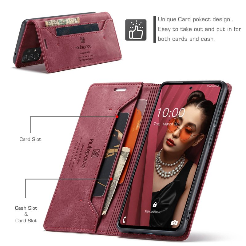 AUTSPACE A01 för Samsung Galaxy A72 Fodral PU Läder - Röd