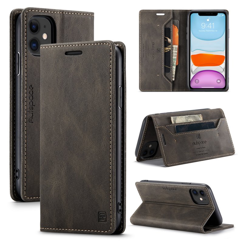 Upptäck AUTSPACE A01 iPhone 11 Fodral i äkta läder. Detta fodral kombinerar stil och funktionalitet. Med högkvalitativt PU-läder och en mjuk TPU-inre del ger det ett komplett skydd för din telefon. Perfekt för den som vill ha både elegans och säkerhet.