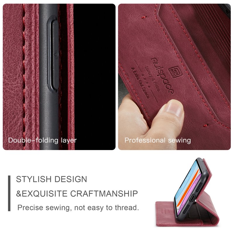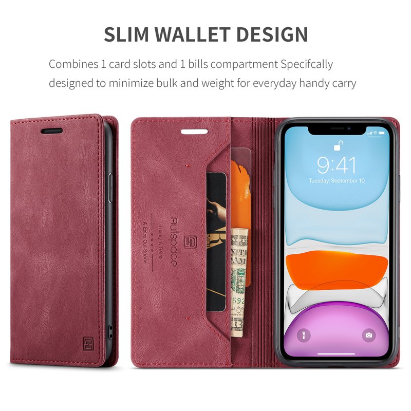 AUTSPACE A01 iPhone 11 Fodral Äkta läder - Röd
