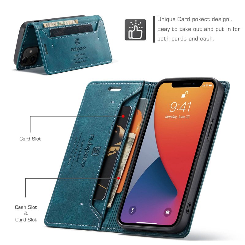 Upptäck AUTSPACE A01 fodralet för iPhone 12 och 12 Pro. Detta eleganta fodral i PU-läder kombinerar stil och funktionalitet. Med RFID-blockering skyddar det din personliga information. Fodralet är designat för att ge ett bekvämt grepp och erbjuder flera praktiska funktioner för din vardag.