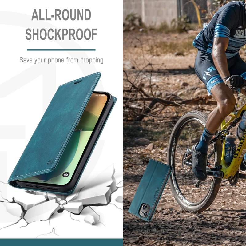 Upptäck AUTSPACE A01 fodralet för iPhone 14. Detta eleganta fodral i blått PU-läder kombinerar stil och funktionalitet. Med sin mjuka TPU-inre ger det ett lyxigt grepp. Skydda din telefon och dina värdesaker med detta praktiska fodral som erbjuder flera smarta funktioner.