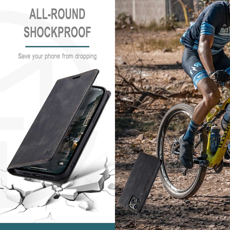 Upptäck AUTSPACE A01 fodralet för iPhone 14 Pro. Detta eleganta fodral i svart PU-läder erbjuder både stil och funktionalitet. Med sin mjuka TPU-inre ger det ett lyxigt grepp. Skydda din telefon och dina kort med detta praktiska och säkra fodral.