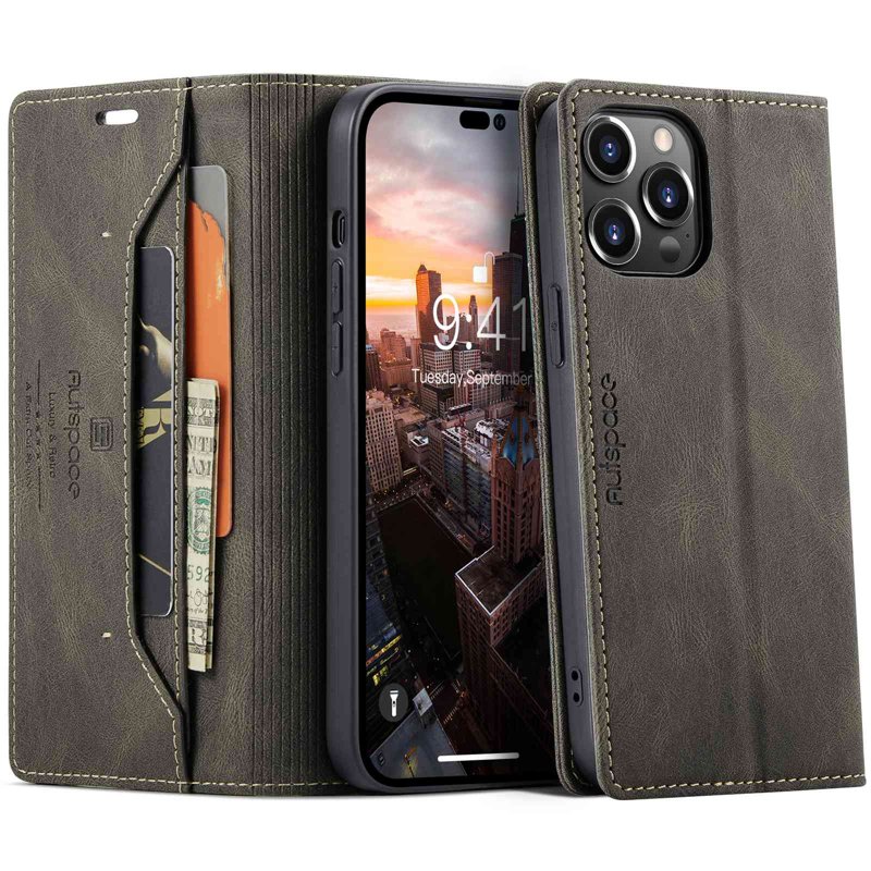 Upptäck AUTSPACE A01 fodralet för iPhone 14 Pro Max. Tillverkat av äkta läder erbjuder detta fodral både stil och funktionalitet. Med sin eleganta design och praktiska funktioner skyddar det din telefon samtidigt som det gör det enkelt att ha med sig dina viktigaste kort och kontanter.