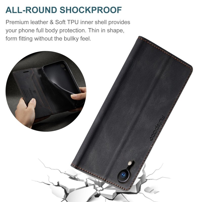 Upptäck AUTSPACE A01 iPhone XR fodral i PU läder. Detta eleganta fodral erbjuder både stil och funktionalitet. Med sin RFID-blockering skyddar det din personliga information. Fodralet är designat för att ge full kroppsskydd och har praktiska funktioner för din vardag.