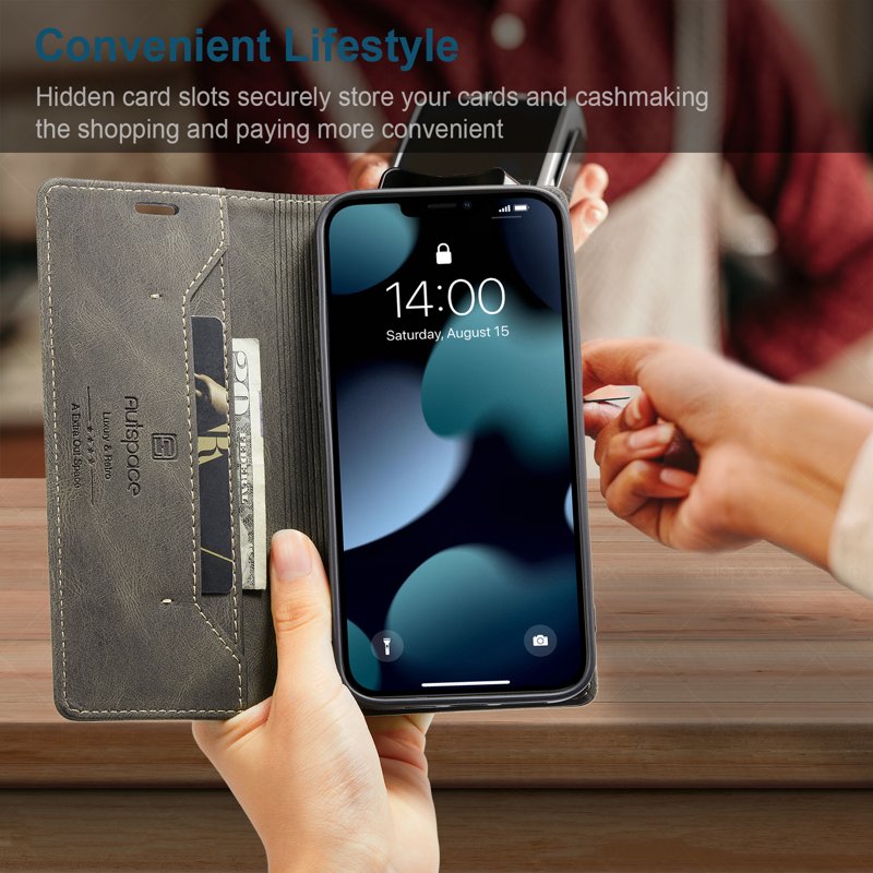 Upptäck AUTSPACE A01 Retro Matte Läderfodral med RFID. Detta eleganta fodral erbjuder både stil och säkerhet för din enhet. Med premium PU-läder och en mjuk TPU-inre del skyddar det din telefon samtidigt som det ger en behaglig känsla. RFID-blockering skyddar din personliga information från att bli stulen.