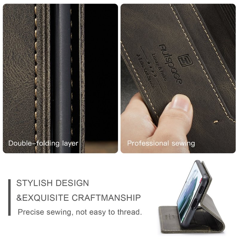 Upptäck AUTSPACE A01 Retro Stil Fodral i Äkta Läder. Detta fodral kombinerar stil och funktionalitet. Det ger ditt mobilskydd en elegant touch samtidigt som det erbjuder praktiska lösningar för din vardag.