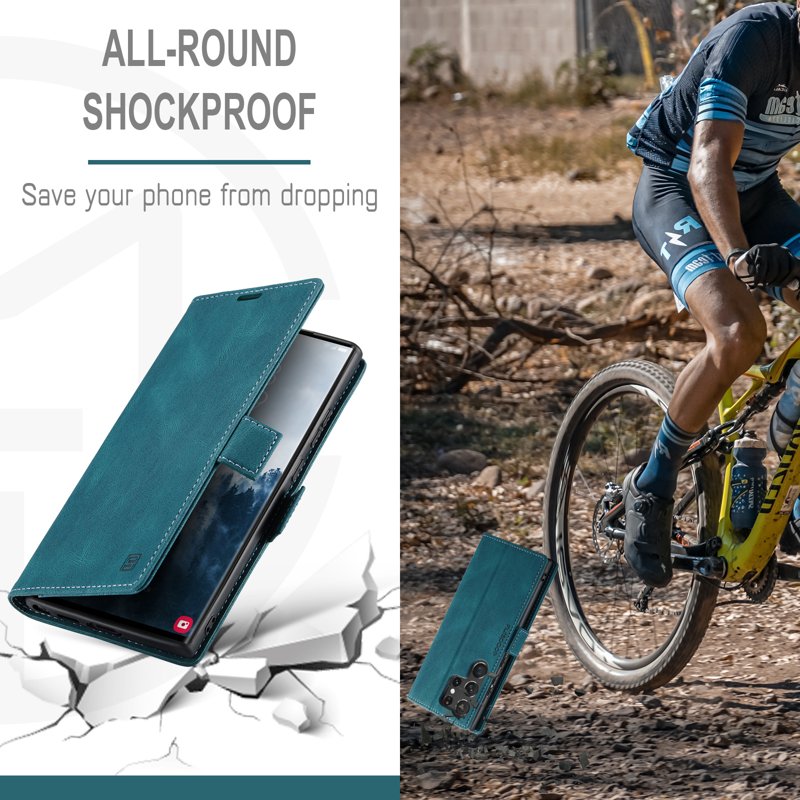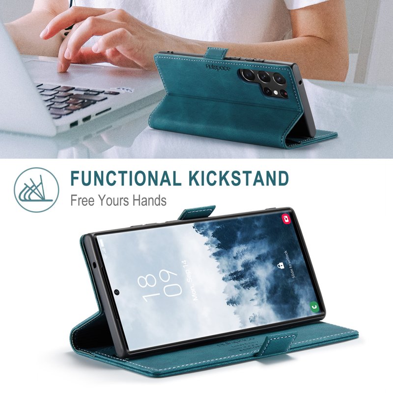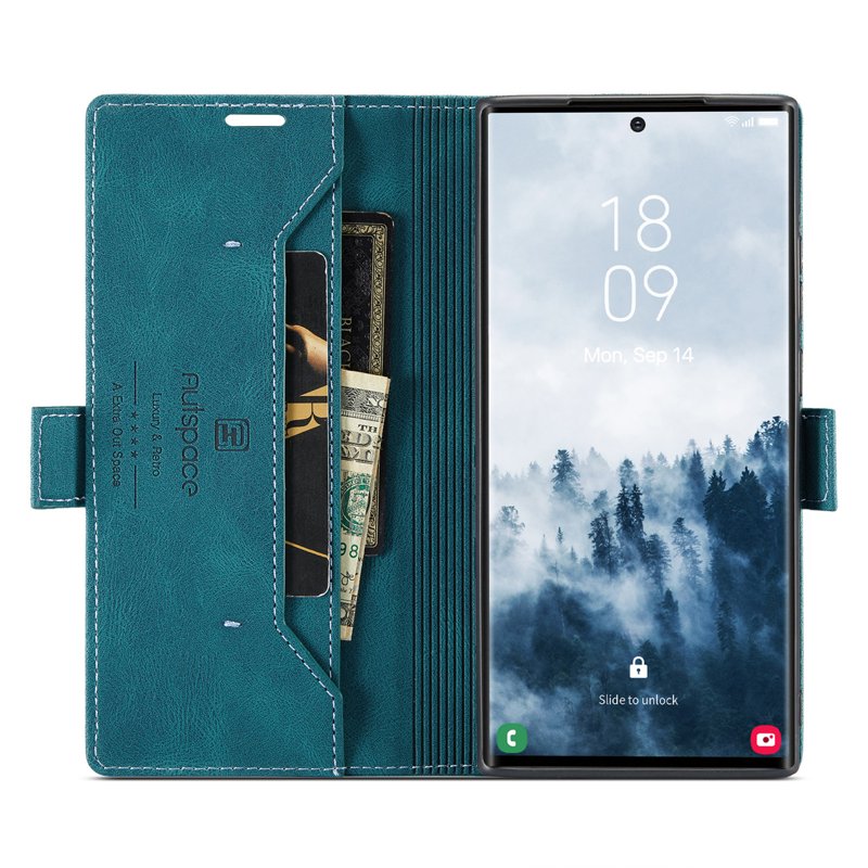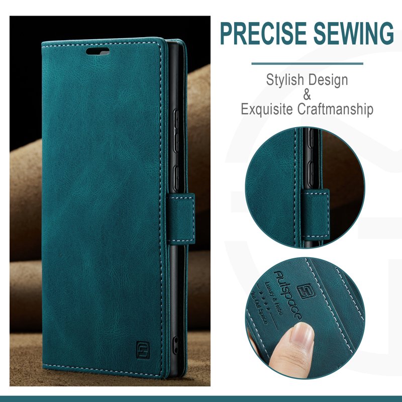 Upptäck AUTSPACE A01 fodralet för Samsung Galaxy S23 Ultra. Tillverkat av äkta läder och med smarta funktioner, erbjuder detta fodral både stil och skydd. Med RFID-blockering och en praktisk kortficka är detta fodral perfekt för den moderna användaren.
