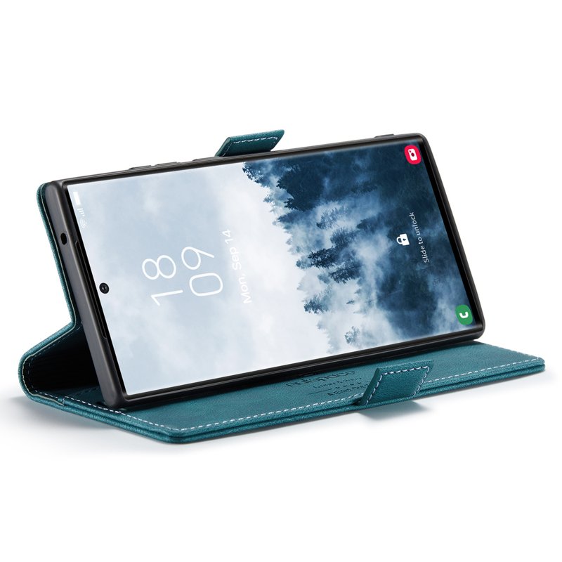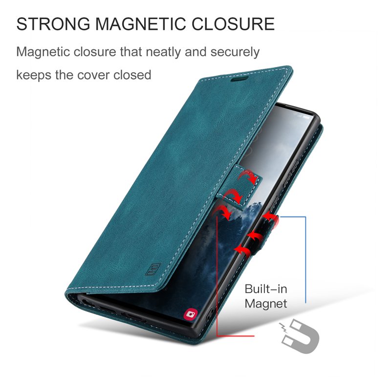 AUTSPACE A01 Samsung Galaxy S23 Ultra Fodral Äkta läder - Blå