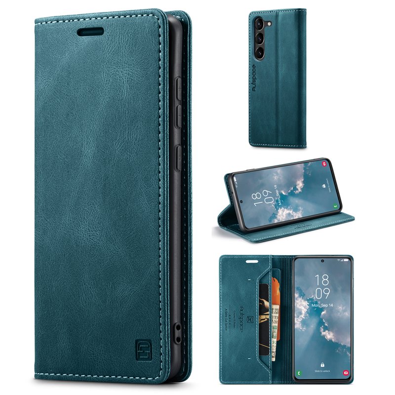 AUTSPACE A01 Samsung Galaxy S23+ Fodral - Äkta läder - Blå